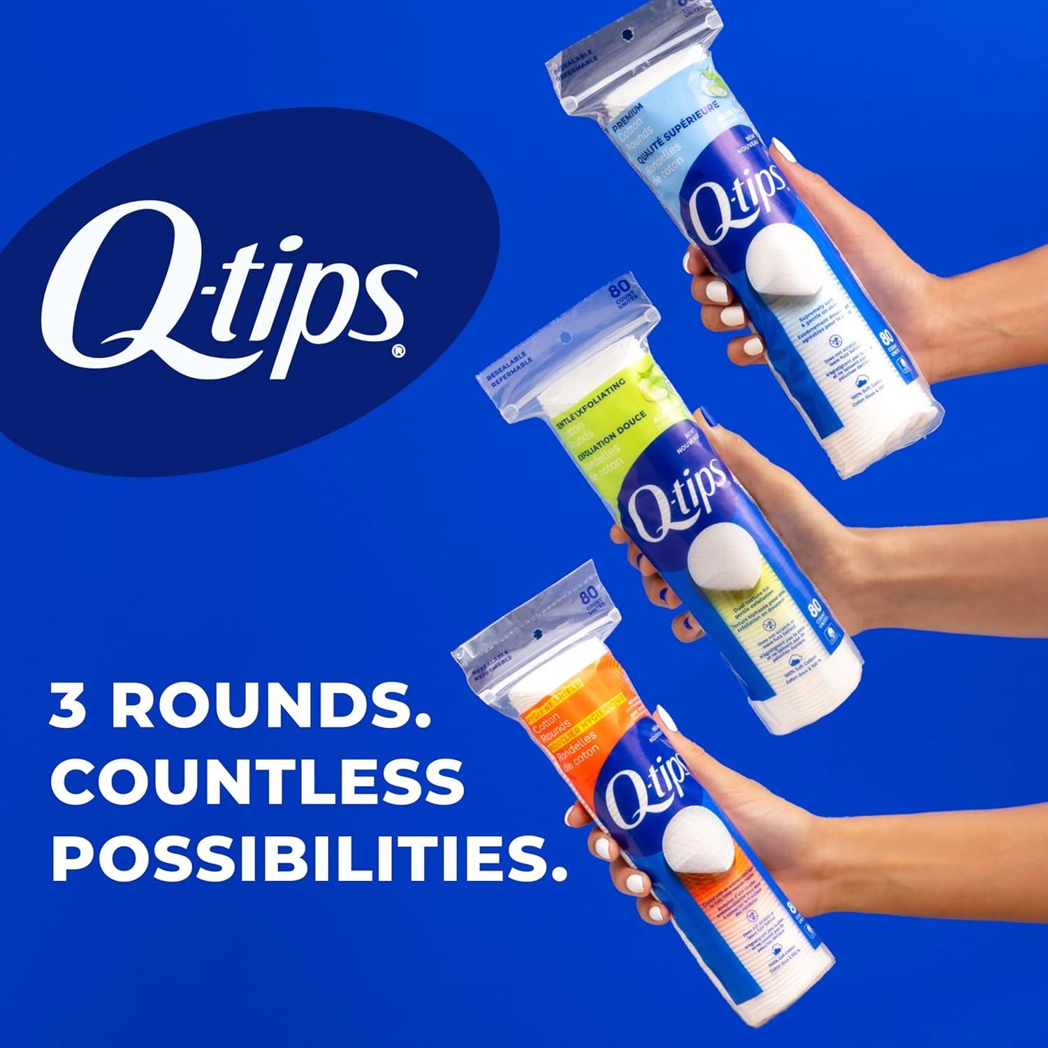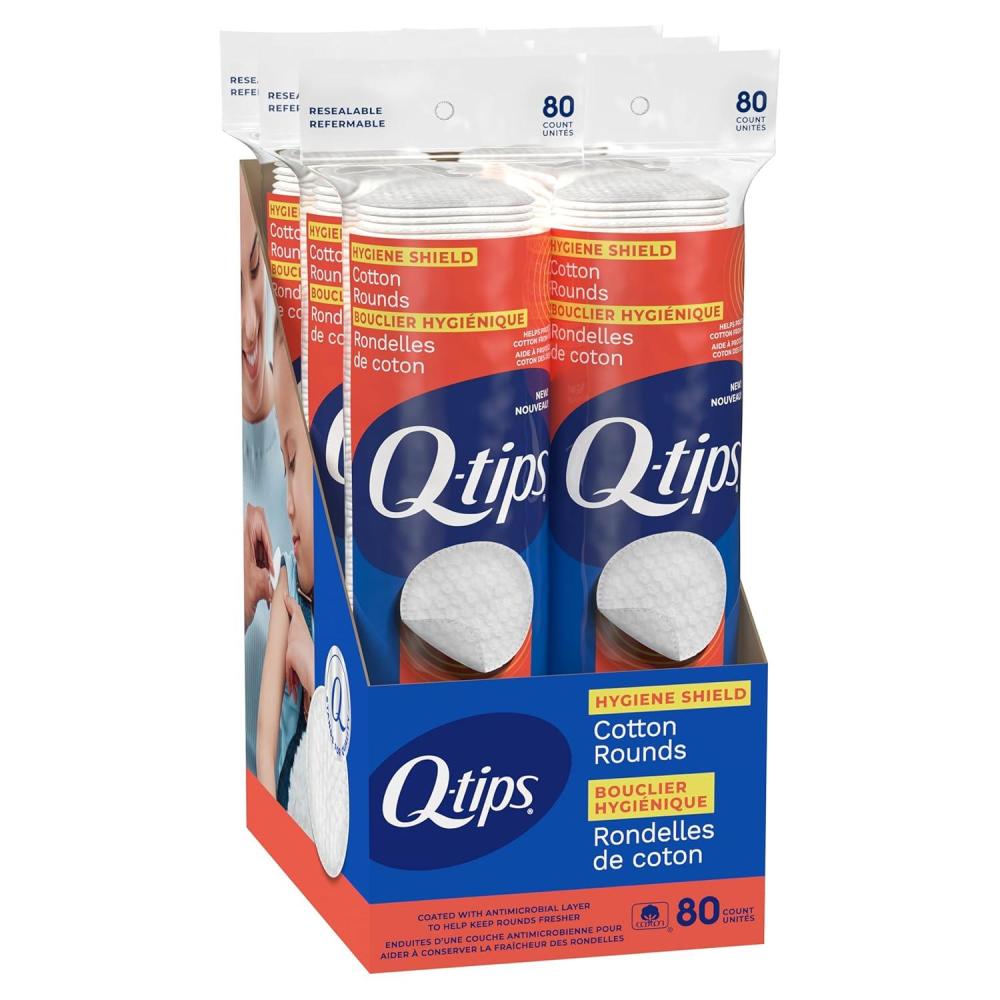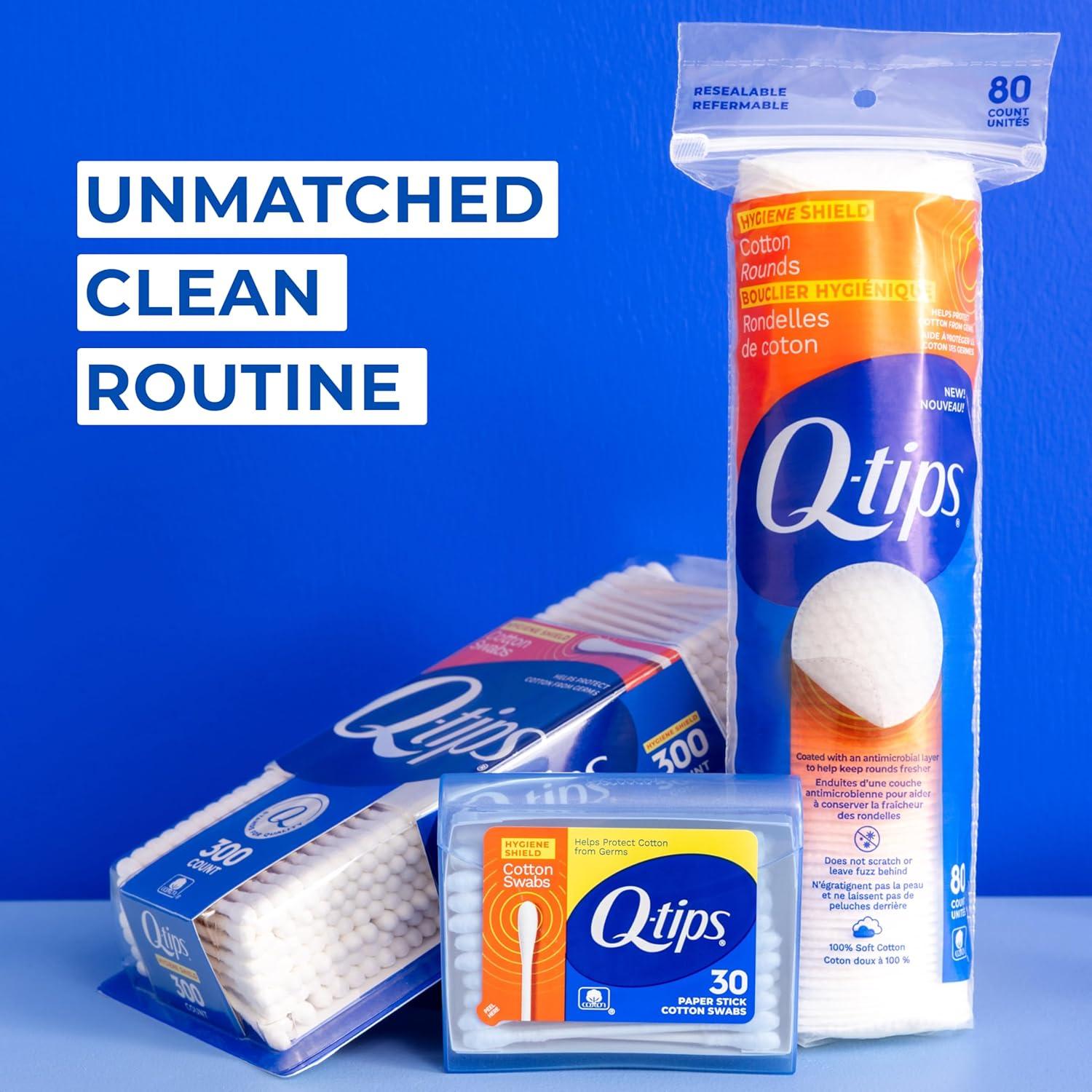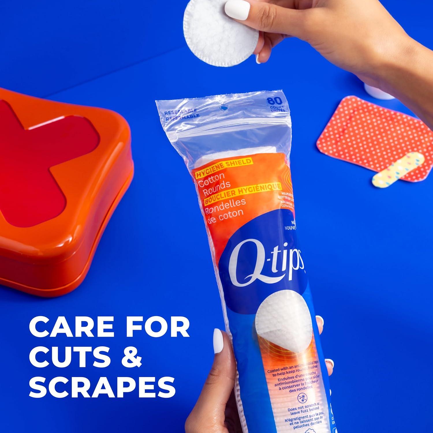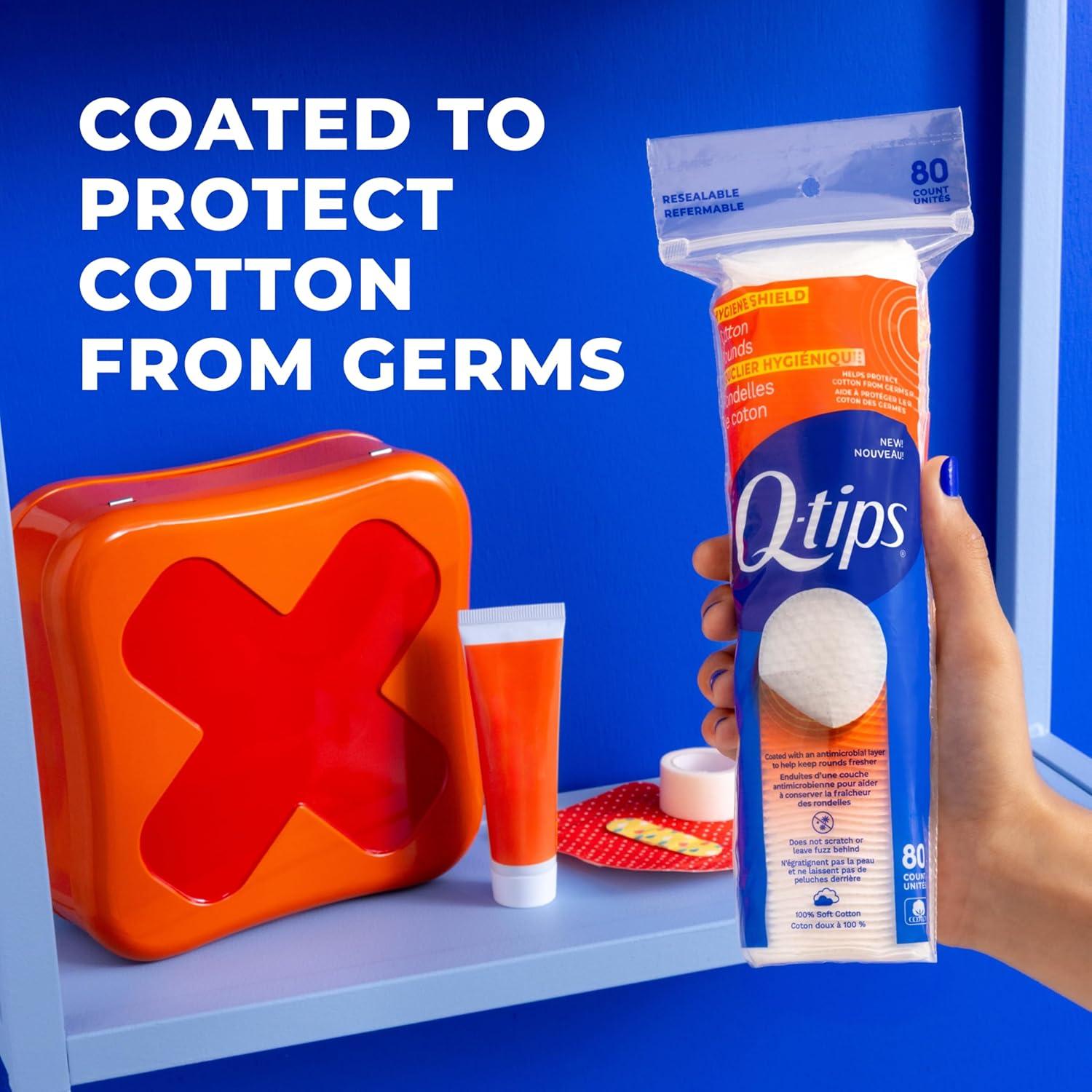 COTTON ROUNDS YOU CAN COUNT ON: Q-tips Hygiene Shield Cotton Rounds are made with 100% soft cotton and coated to help protect the rounds from germs—offering peace of mind with every use.