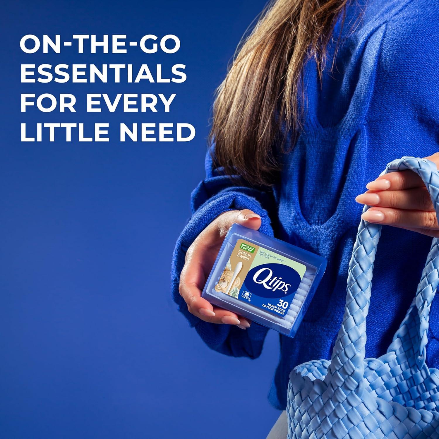 MADE WITH 100% ORGANIC COTTON: Q-tips Organic Cotton Swabs feature the softest tips at both ends, providing a safe, gentle, and reliable touch for baby care and beauty routines in the perfect mini travel carrying case
